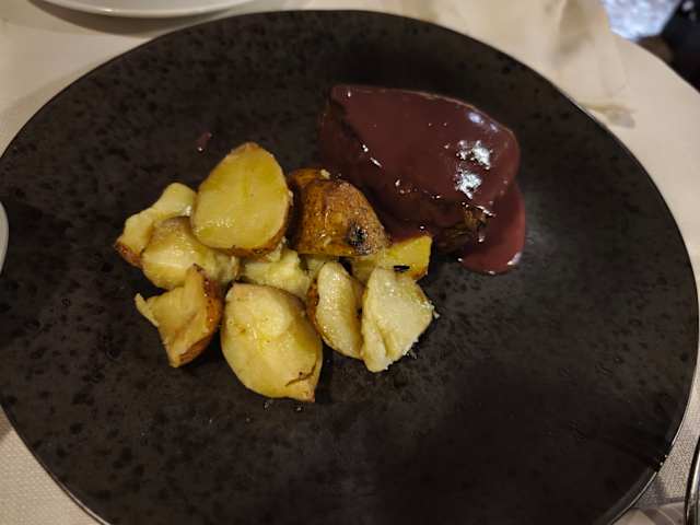 - Guancia di vitello al rosmarino (cotto 12 ore), carotine e purea di patate all’olio