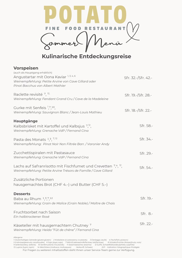 10/10Potato receives the highest recommendation we can give. We received a warm and welcoming greeting with outstanding service. The menu is small because everything is locally sourced, which makes it easier to choose. We were provided with perfect descriptions of the menu options. The food was excellent with unique presentation of every course. Thank you for a perfect dinner experience in Zermatt!