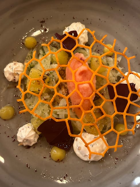 6.5/10The food was generally very nicely plated and the service was very attentive. However, it was the first night of a new menu and none only one of the courses (which was a vegetable plate) wowed me at all. And what I liked about that one was more about the presentation than the taste. It tasted good to me but not to my husband, and was not at the level I would expect at that price point. For another course, the server indicated that she did not know how the sauce should be presented (poured over the course or around it on the plate). At these prices, the servers should know these things. In addition, the meat course, which I believe was duck, was overcooked.