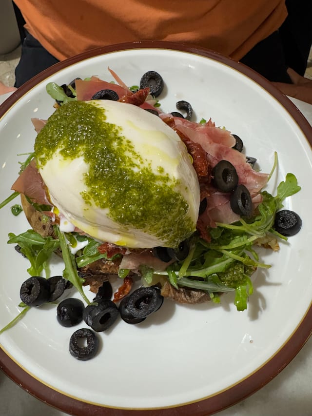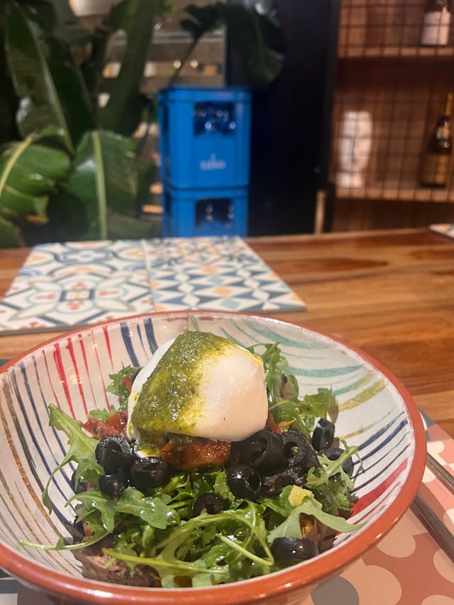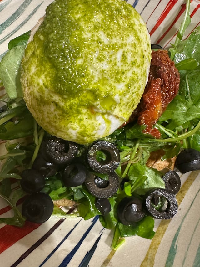 A mix of flavors that wins you over with the first bite: delicate prosciutto crudo, fresh and vibrant arugula, flavorful olives, and creamy burrata that wraps every ingredient in a delicious embrace. A triumph of freshness and creaminess!