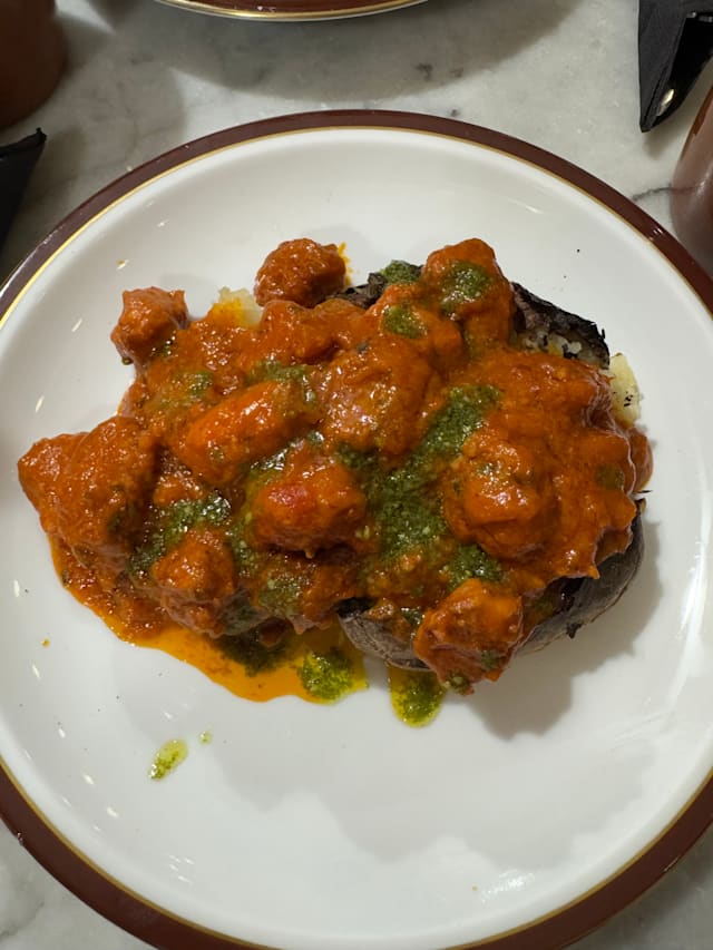 When italy meets portugal inside a potato! Juicy meatballs slowly cooked in a rich tomato sauce, enhanced with a splash of port wine for a unique depth of flavor. All topped with the irresistible creaminess of buffalo mozzarella. A comforting hug of flavors in every bite!