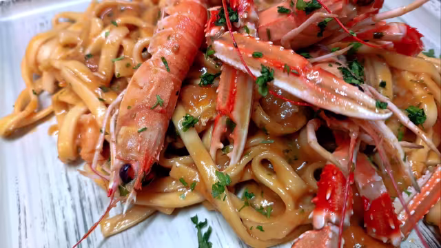 - Fettuccine al gamberone di mazara ai due pomodori.