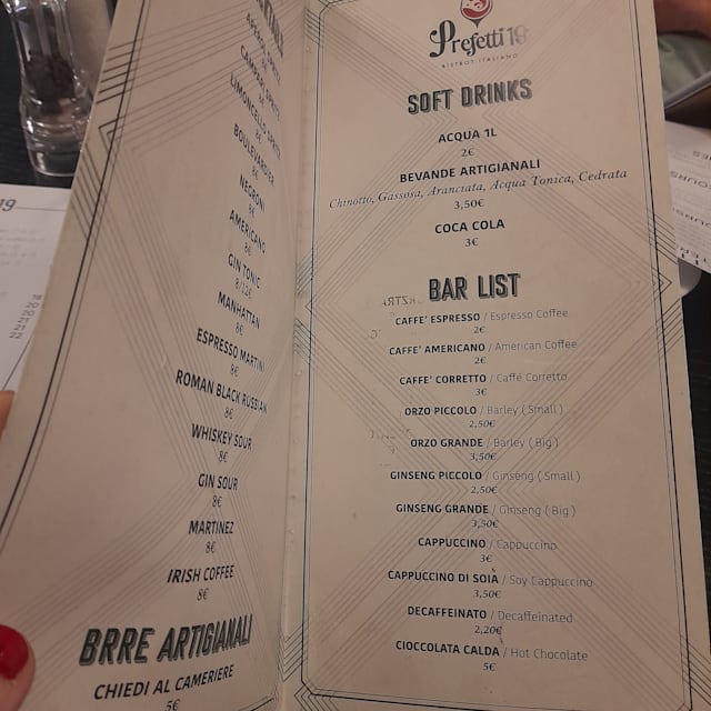 If you plan to eat at Prefetti 19, the average price should be around €45. The average price is calculated based on appetizer/entrée or entrée/dessert, excluding drinks. Prices have been provided by the restaurant.