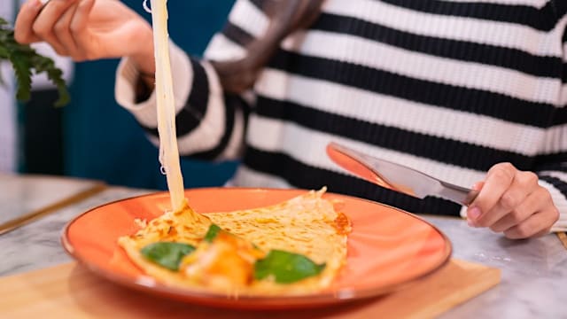 El clásico: queso fundido, huevo, tomate y jamón york. Pruébalo con bacon crujiente o champiñones salteados con pimienta.