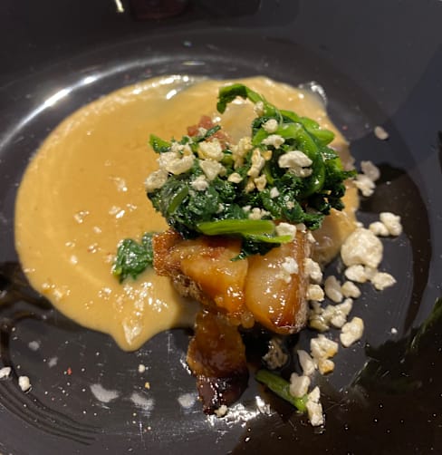 10/10What a wonderful evening we had at this fabulous restaurant. We had ‘The Trip’ tasting menu and every dish was a delight. The whole tables favourite was the pork, which was melt in the mouth delicious. Laila was extremely welcoming from the moment we arrived and leaving the wine choices in her hands was a very good decision. It was a treat to have Chef Paolo come to our table at the end of the meal, even going above and beyond to recommend, then phone and book a restaurant for us for the next day. What a lovely husband and wife Team. If you are ever in this area this is a restaurant not to miss out on. Truly outstanding.