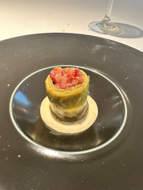 9.5/10Great food. My favorite was the artichoke to the sea with buffalo meat. This was one of the best wine pairings with food I have had in a 1 star. The sorbet with dessert wine was amazing… didn’t want it to end. I would go.back and do it all over again!