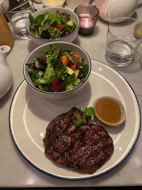 9.5/10Nice and modern location, friendly service, open kitchen, very central and really important very good food. We had a Bowl as a starter and steaks. Both very good, the meat of the pepper steak you can’t get better.