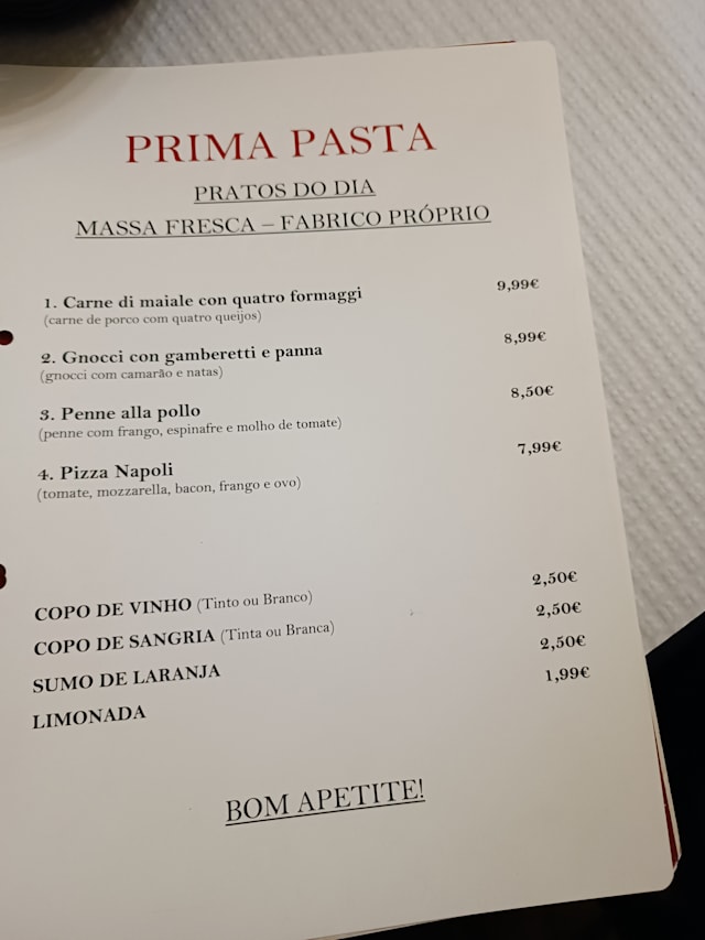 10/10My wife and I recently traveled for almost three weeks across Spain and Portugal. We obviously ate at many restaurants during the trip, and enjoyed some very good meals. I can honestly say that top among them was Prima Pasta. Place is not fancy, but has a great “local” ambiance. Food is very authentic and incredible. Great value for the money and service impeccable. I highly recommend and would go there weekly if I lived in Lisboa!