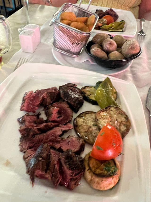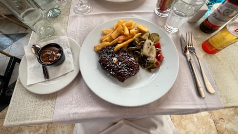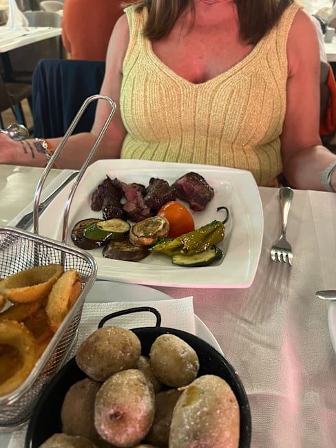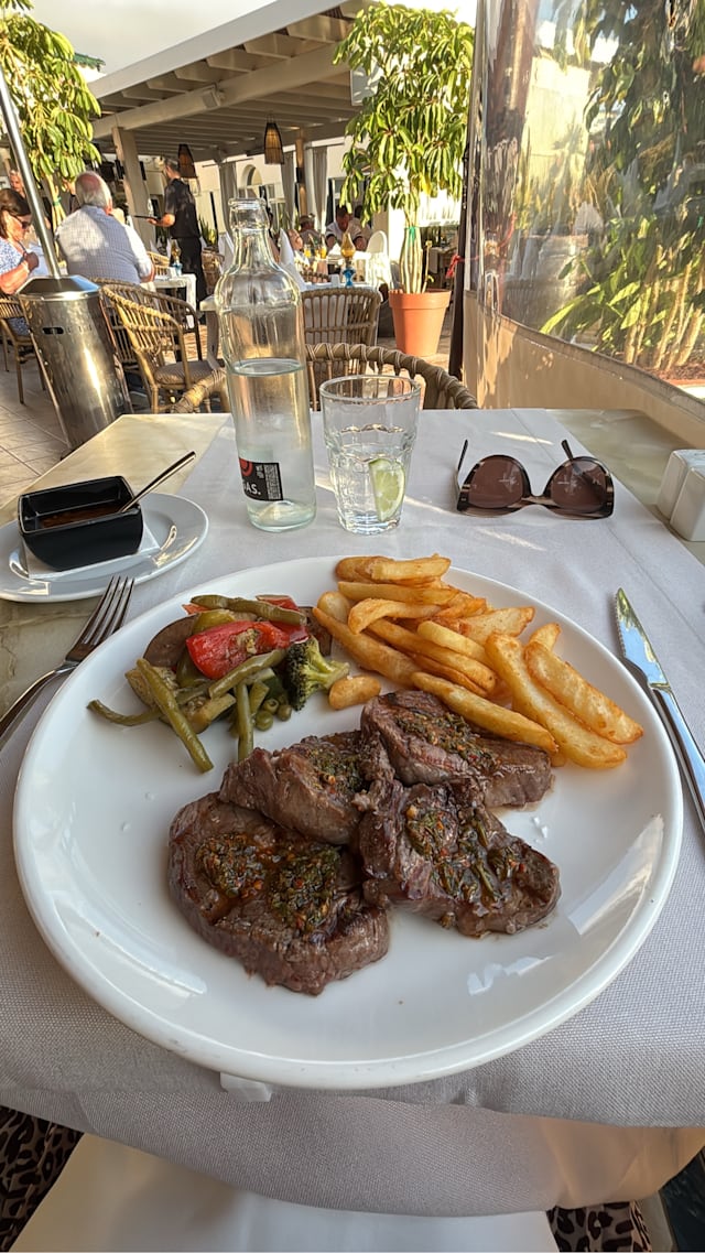 7/10Everything was good we like rueda wine but no large bottles has been house wine for many a year sirloin steak was a bit fatty but he rest was good.