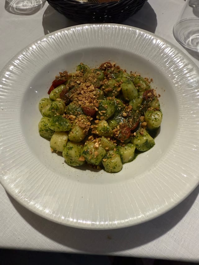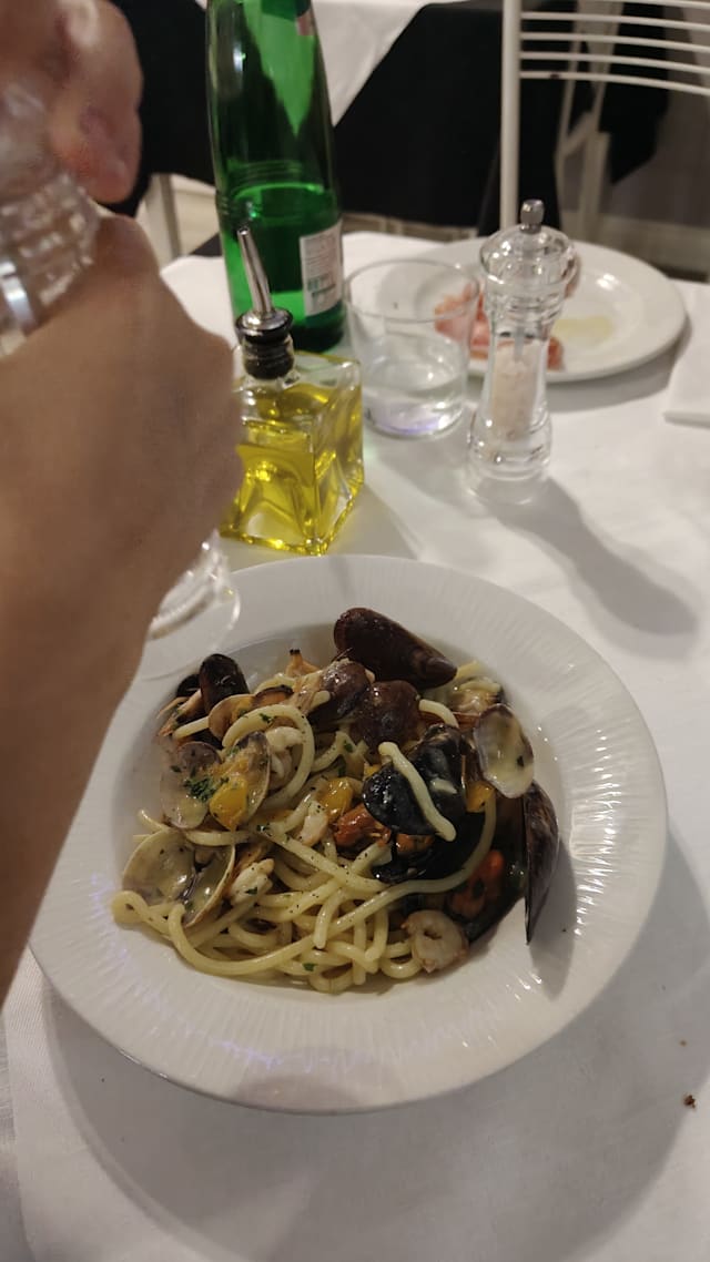 6.5/10We were disappointed with our experience. The pricing appeared reasonable and the food was ok. We were however bombarded with rapid questions from our waitress re our wishes without waiting for answers and furnished too quickly with bottles of both sparkling and still water when we only wanted sparkling.We ordered a caraf advertised of house wine and received a bottle which was admittedly good quality and reasonably priced,if slightly more expensive.We were also furnished ,unsolicited,with 3 slices of bread for which we charged 3 euros.We had ordered one portion of patates frittes under some pressure from our waitress,as a side but were surprised to receive two very small plates of what were in effect fried crisps/ potato chips at €5 euros per plate. We felt slightly deceived.The prawns and calamari were a fresh and uncomplicated dish.My taggliata was ok,a bit anaemic in appearance presented on a tired bed of rocket with grated ,somewhat bland Parmesan. The pasta dish ordered was tagliatelle with mushrooms and truffle. The dish presented ,smelt of both but the consumer felt that the dish tasted quite bland and was under seasoned. We declined the suggestion of our server that we would of course have dessert and left feeling somewhat shaken down. We were then followed out with the vague implication that we had not paid, having used the fork app. We returned and clarified with the owner who confirmed payment. We won’t be returning!