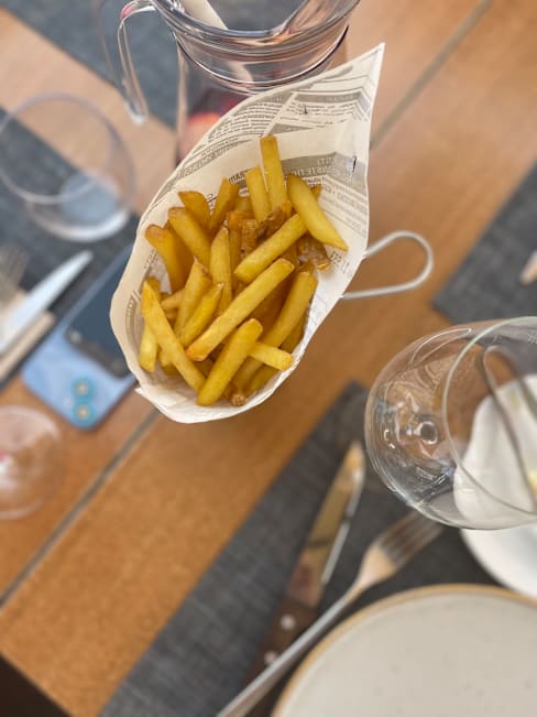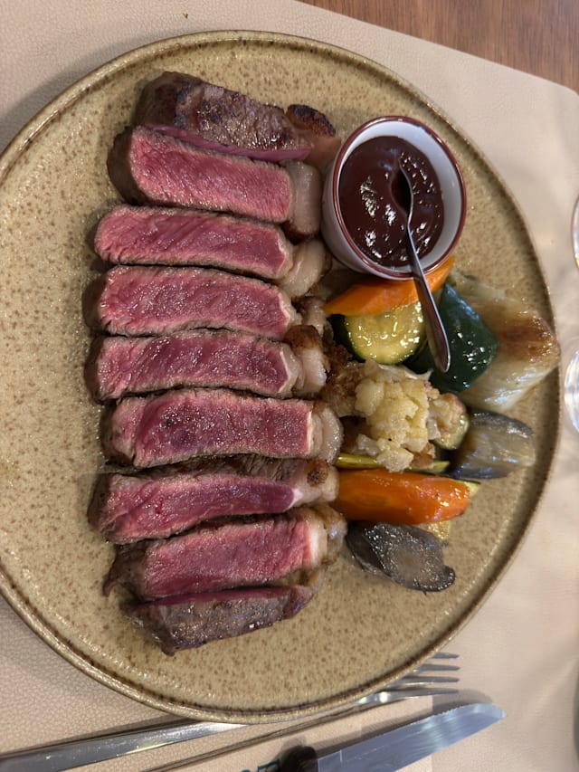 9.5/10The location is great, just of the main street and therefore a little quieter. Inside is very pleasant with a nice atmosphere. They have an outside terrace which is lovely in the summer, but in the winter the inside is super cosy, warm and comfortable. The staff know what they are doing and are very attentive without being intrusive. If you are unsure ask them and they will help. They did not have our choice for starter but made some very good suggestions for alternatives. Our meal was excellent and we will return again, soon.