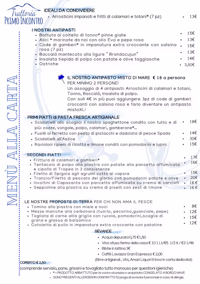 Menu' Degustazione€35 per guest
