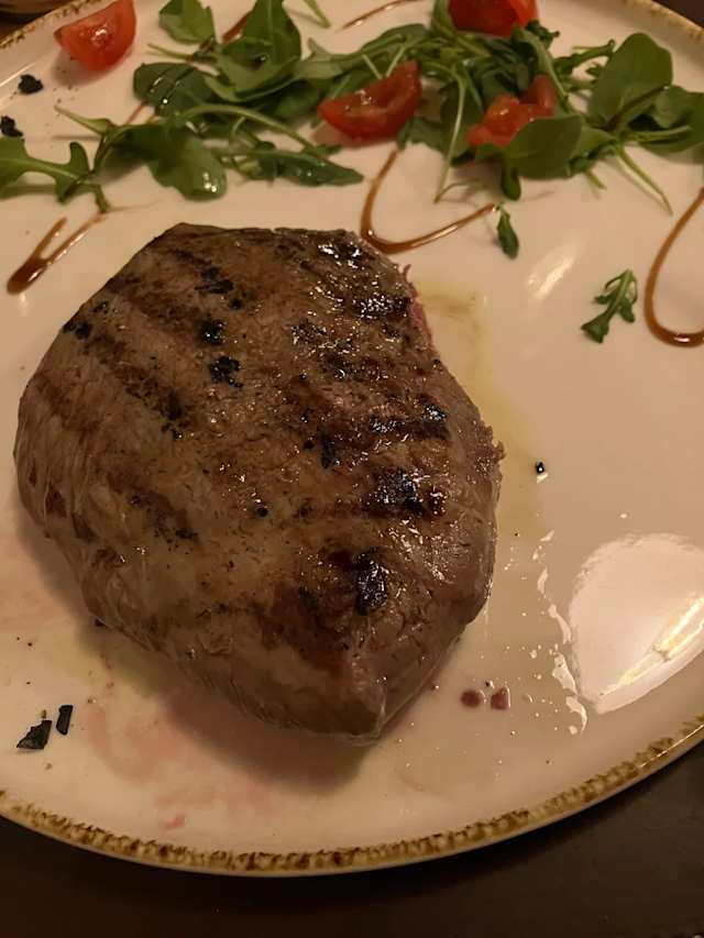 - Pluma iberica (maiale) con salsa di peperoni bruciati e patate al forno