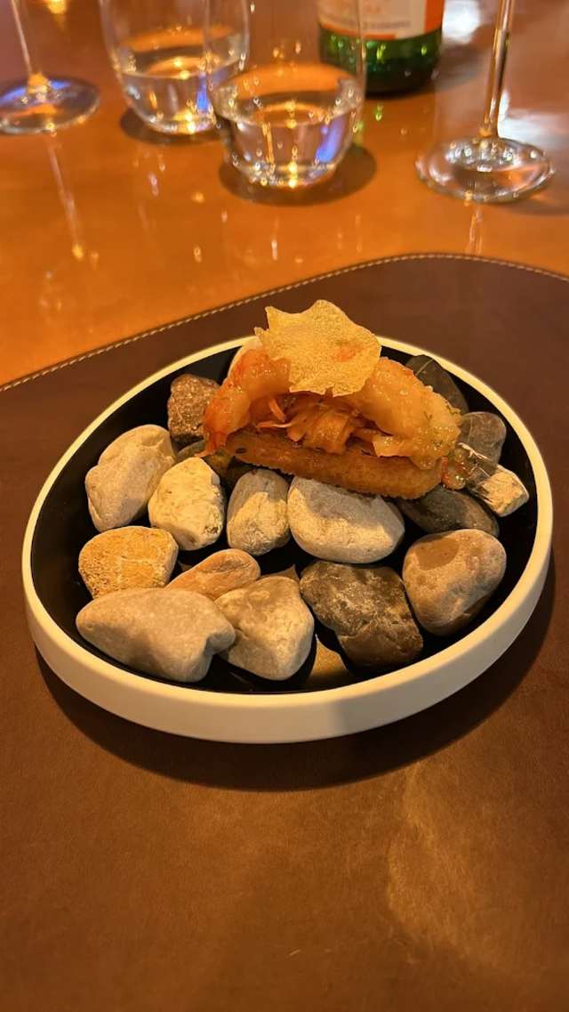 - Scamorza al cartoccio con datterino confit, patè di olive, e sedano marinato