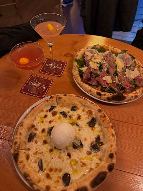 10/10amazing pizzas, good portion, if you're lucky they have happy hour on craft beer, cool ambience. the tiramisu is amazing, diferente twist of the original but excellent. good cofee and Nice lemoncello. go for it