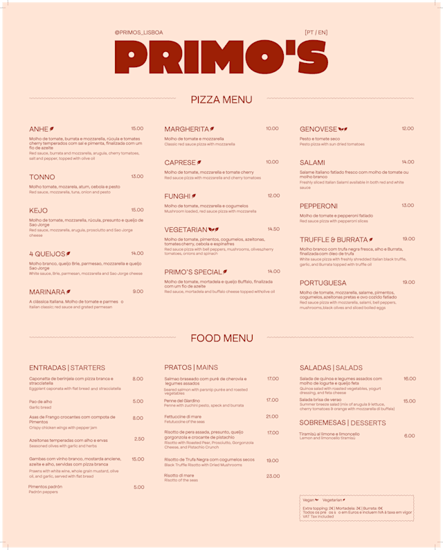 Dear Filipa, Thank you for your feedback. We’re glad you enjoyed the food. We would like to clarify that we do have a wine list available, and our ordering system only allows our team to serve wines that are selected through it, ensuring price transparency. We regret if there was any confusion regarding the temperature or service of the wine and will address this internally. We appreciate your comments and will use them to continue improving our service. Warm regards, The Primo’s Team