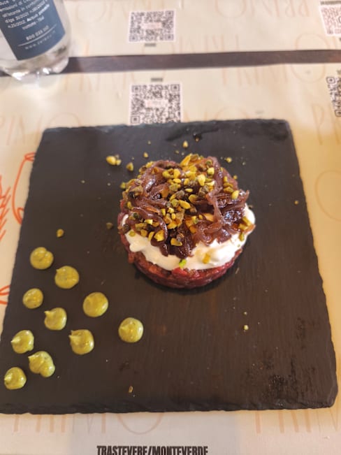 10/10A little gem close to Trastevere station. Amazing food and service. We had a tasting board, various bruschetta, steak tartare, rump steak and a pizza.... all top drawer dishes along with advice and info about the food and which wine best suited. When we're next in Rome, we will definitely visit again ;-)