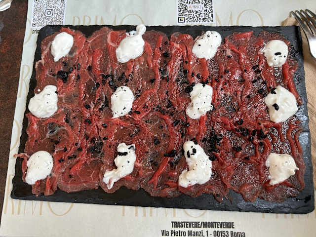 9/10Primo Urban Bistrot is a cozy, informal bistrot just steps from Trastevere Train Station - ideal for a relaxed couple’s night out. Attentive yet unobtrusive service sets the tone, while inventive meat sushi rolls, tender carpaccio and tataki, and a savory pork-lardo bruschetta showcase the kitchen’s creativity. Two glasses of Negroamaro paired perfectly, and the creamy tiramisù made for a delightful finale. Prices are fair, the atmosphere warm, and you can even pay with Yums points—making it a smart choice for both a casual date or a laid-back dinner with friends. Reservations recommended!