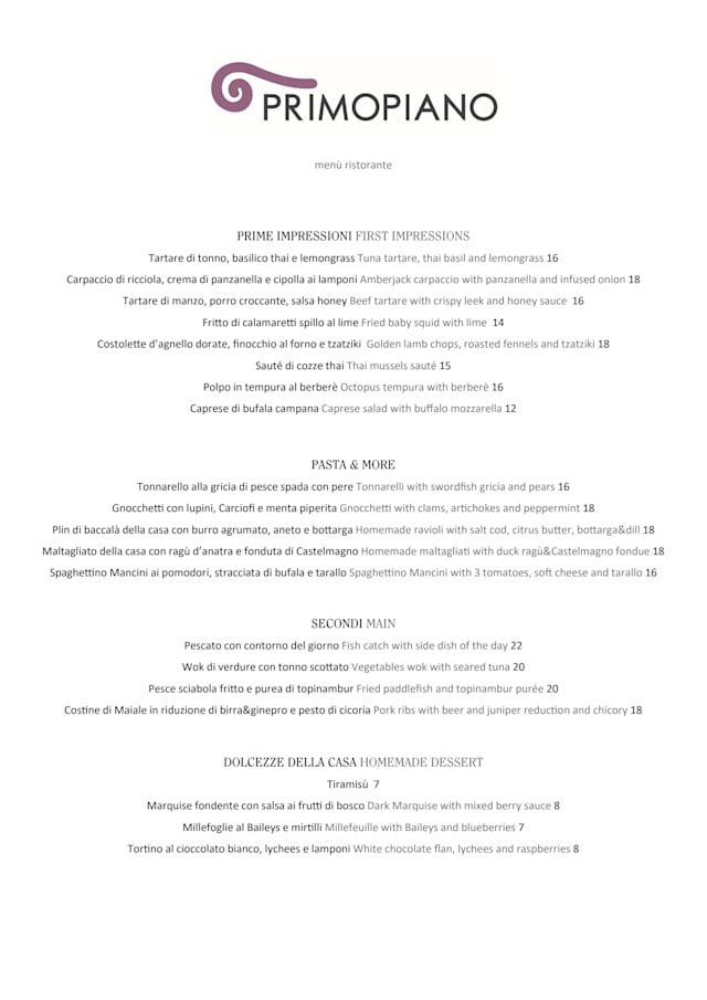 PRIMOPIANO Aperitivo&CucinaGrazie per averci dedicato del tempo, il vostro feedback è importante per migliorarci. Vi aspettiamo presto per provare le stuzzicanti proposte che la nostra cucina settimanalmente cambia e prepara sempre con grande professionalità ed amore. A presto, PRIMOPIANO BISTROT&LOUNGE By Porto Romano