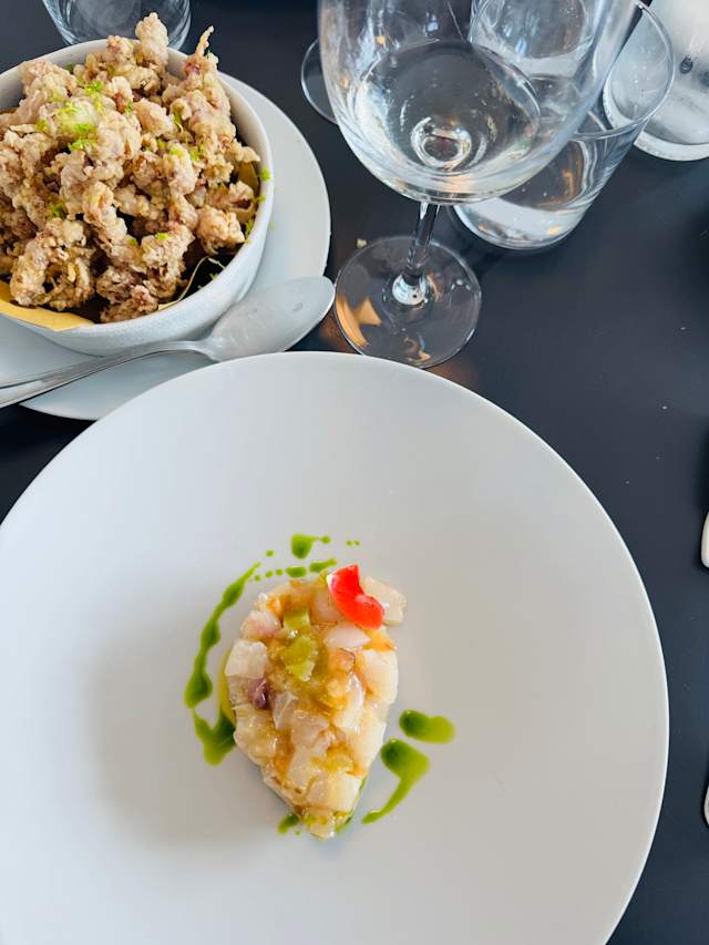 - Tartare di ricciola con pomodoro verde, peperoncino, cipolla di tropea e menta