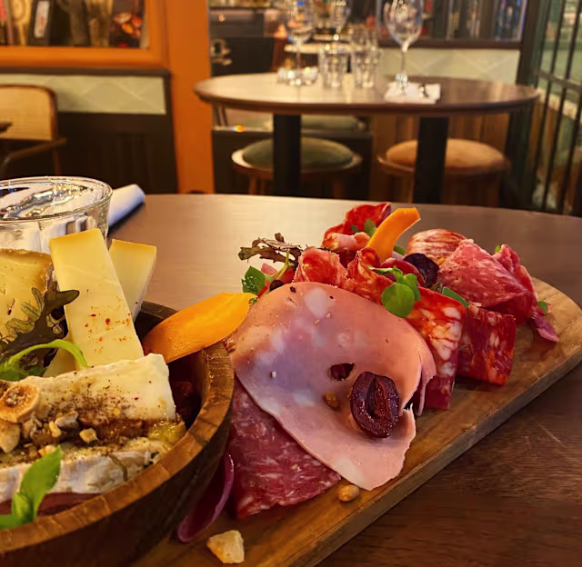 - Assortiment de charcuteries, mesclun de jeunes pousses, olives taggiasche