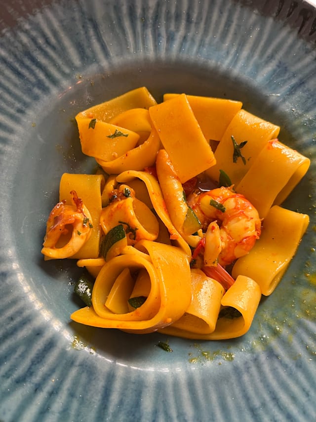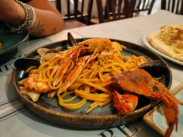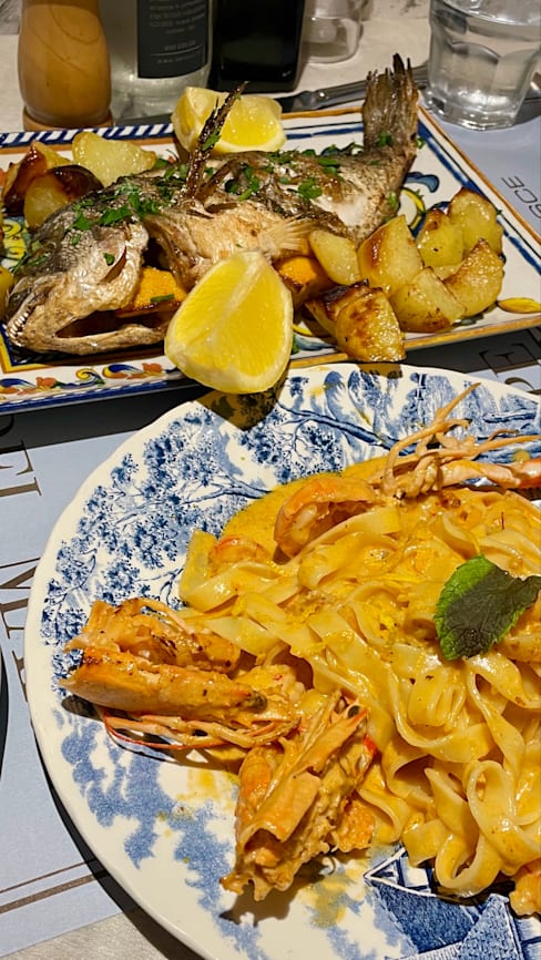 9.5/10Baked sea bream with potatoes is delicious, fresh and tagliatelle with shrimp are fabulous! And discounts are available while you have reservation