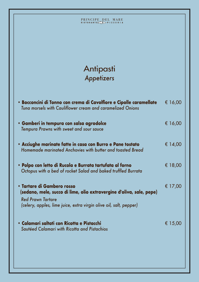 9/10The mixed fish for two was amazing, very fresh and juicy. We would go back just for that. Also appreciated that the restaurant was open all day and we didn’t have to wait until the normal Italian 7:30 pm to eat.
