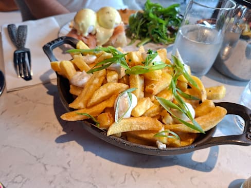 8.5/10Great location and lovely atmosphere. The service was friendly, though unfortunately not entirely accurate, as our order was taken slightly wrong.