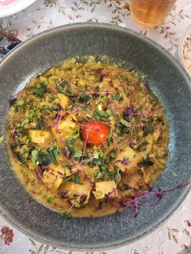 10/10charming hidden gem, you would never expect that quiet beautiful place with jazz in background , the waiters are really fun and helped us feel really comfortable, food was ambrosial, everything is at least vegetarian, and if you want fully vegan you still have the logo next to it on the menu to guide you, we had so much choice that we enjoyed debating on what we would order, conclusion : we are gonna be back for trying the mushroom burger, and the tarte de chocolate :)