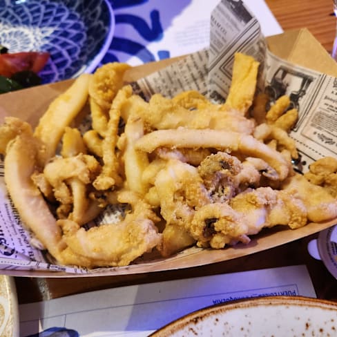 10/10Coo atmosphere and delicious fruit del mare. Different experience. You pick the food that you will have like at the market. And then they prepare it for you