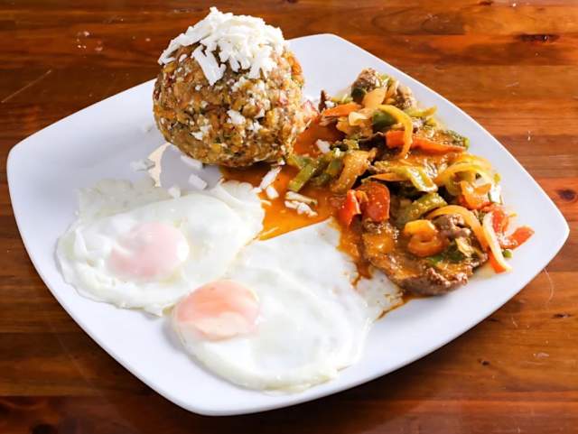 - Bistec con arroz y huevos