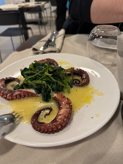 10/10Amazing pasta with an unusual taste. Very soft octopus for a starter. Place is not crowded and is relatively quiet, and the staff was very friendly and kind.
