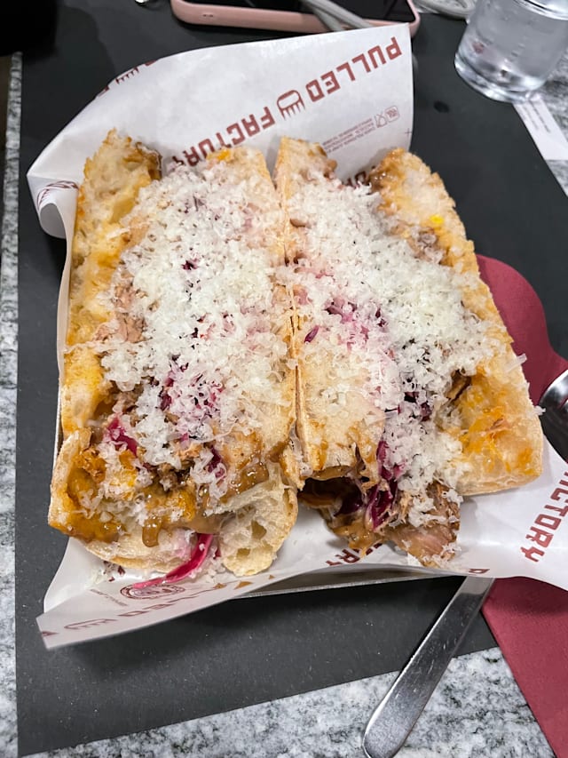 Thank you so much Yelena for your kind words! 🙏 We're thrilled you enjoyed the tender, lightly smoked pulled pork and the refreshing coleslaw with green apple. We love offering both sandwiches and full dishes to satisfy every craving. Don’t miss our Sandwich of the Month 🥪, the Wednesday 2x1 deal 🎉 (bring a friend and pay for one!), and our Sunday brunch 🥞🍳. For lunch, we also offer a great menu at just €13 with a main dish or sandwich, water, and coffee included. Looking forward to welcoming you again soon at Pulled Factory! 🍽️😊