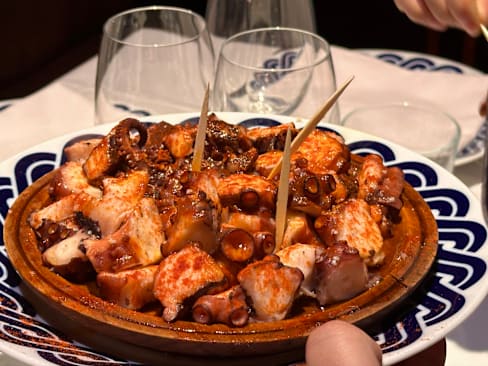 4.5/10Pulpo was soggy and the top layer had too much salt and the bottom none. Poor execution. Rest of our dishes were ok. Waiter pushed a bit for a tip with the patron guest next to us. Feels like a tourist trap…that I fell for.