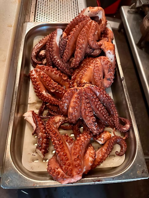3.5/10We came six people for a dinner. We got a waiter that did nots speak English or pretended so, everything we asked from the menu, he couldnt explain or answer. We ordered few different dishes. The cod fish was unchewable, like chewing gum, they put only salt , no other condiment, no taste. Also ordered steemed mussles that did not have any sauce in a pot, that usually mussles come in vine sauce or other, they were dry. We asked for frech fries and got baked potatos for 12€! Also ordered their famous octopus for 2 persons with boiled potatos. Octopus was average and watery, but potatos totaly over boiled, with a lot of water in a plate, like soup! Looked and tasted terrible. Mixed salad (what was written on the menu) was salad with tuna, egg and olives. We were six persons and they failed for all of us we all got very bad experience. Is it one time mistake? I do not think so.
