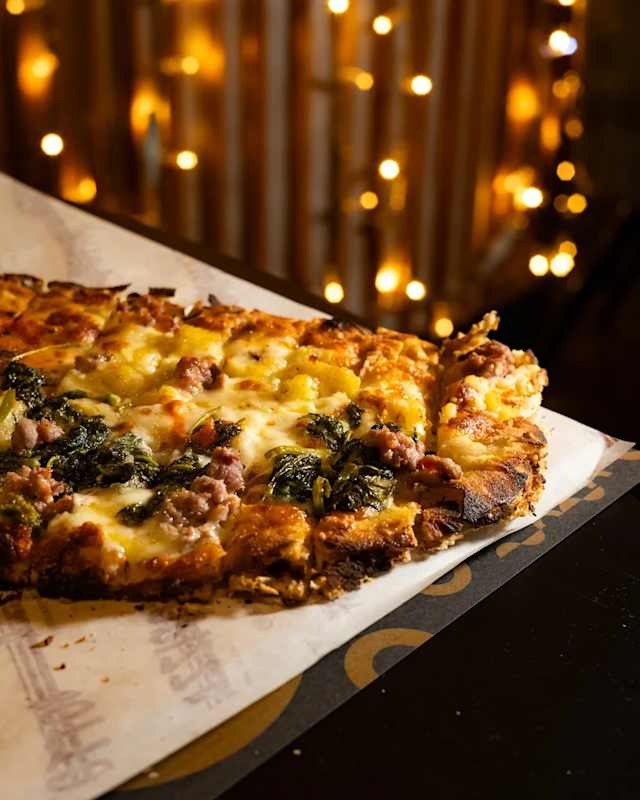 - Provola di agerola, cipolla di tropea, salsiccia di malalino nero casertang, piennolo del vesuvio,basilico e olio evo