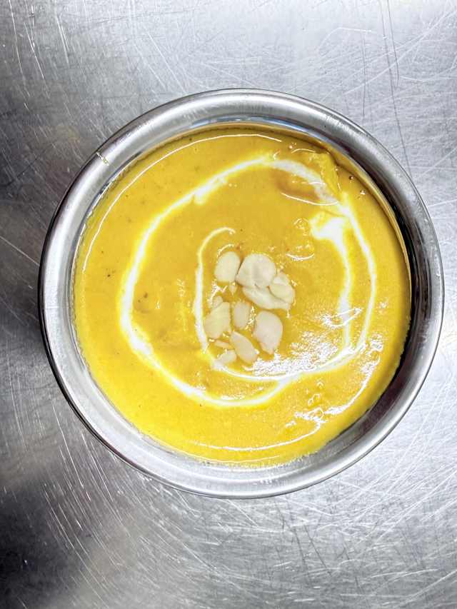 - Pollo in salsa cremosa con mandorle e spezie aromatiche. Serviti con riso basmati