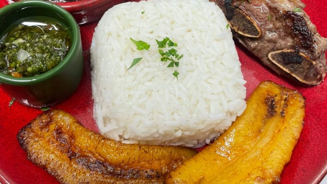 Carne de ternera ,chorizo pollo gambas, calamares , chipirones , al mejillas, yuca y...