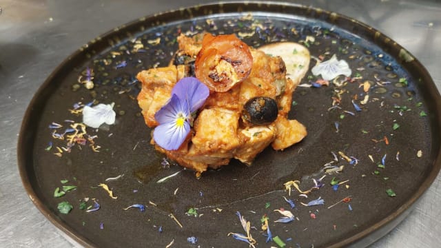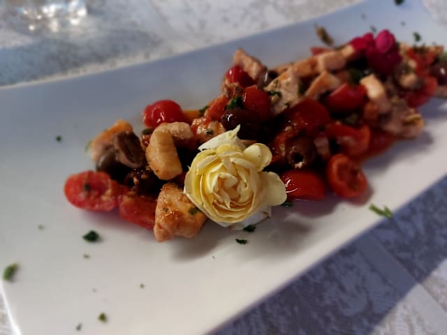 Tentacolo di polpo su crema di patate aromatizzata all’erba cipollina