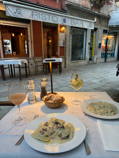 5.5/10Fish of the day was just a filet served whole without any seasoning or anything to make it special. The waitress would not allow any substitution of the side served with it (cubed sauteed potatoes if ordered sea bream; steamed spinach if ordered pesce del giorno). Wine was mediocre. Ambience was lacking - just a bar on a corner of back street. Our waiter spoke English well, but wasn’t professional: let us know his main interest is “partying”, and when I inquired about the origin of the restaurant name, he crassly (in front if my elderly parents) replied: it’s named after the G spot. In short: there are much better restaurants in Venice at a similar price. Wish we hadn’t spent one of our few evenings here.