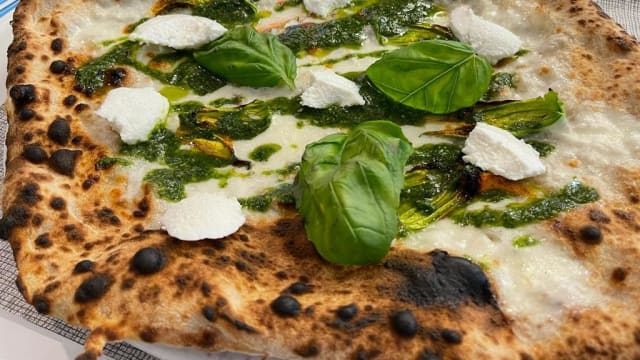 Fiordilatte: mortadella, burrata granella e pesto di pistacchi