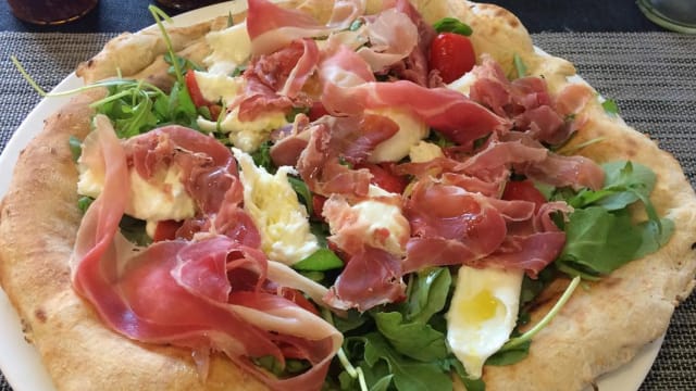 Fiordilatte, porchetta ariccia, tartufo nero, pepe e scaglie di grana