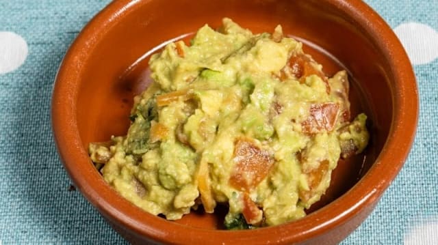 Enchilada es una tortilla de maiz tostada con capas de queso, frijol, un ingrediente, queso y un rico aguacate