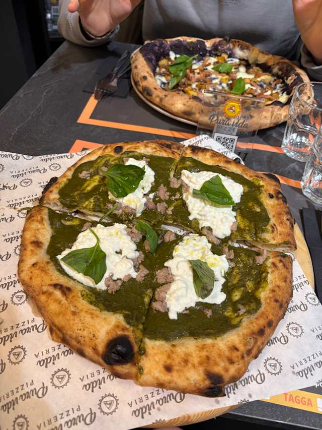 - Disco di pasta doppia cottura, crema di friarielli, salsiccia paesana, stracciata di bufala, parmigiano reggiano 20 mesi, basilico fresco, olio EVO DOP