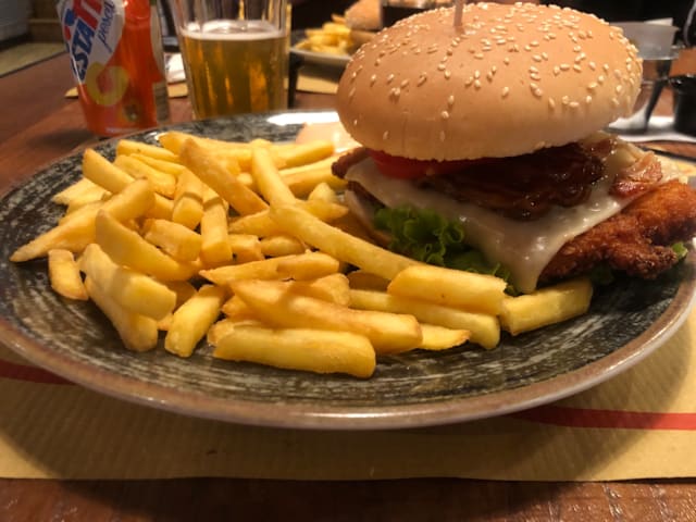 6.5/10we ordered finger food . tacos, avocado bites, fried chicken fillet and fried jalapeños . the food was ok. the tacos was not bad with the salsa but the chicken could have more flavour and be less dry, the avocado bites had a very liquid consistency, the chicken fillets were tender and go very well with the chili mango sauce. the fried jalapeños were spicy with some goat cheese , not my favorite. lastly we had baked potato with sour cream, the potatoes were nicely baked, soft and moist.