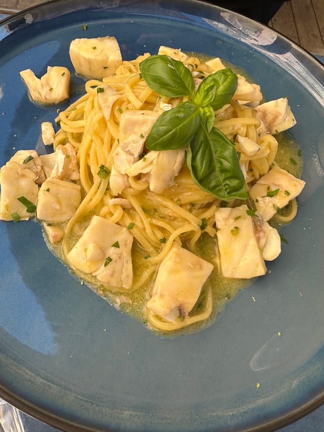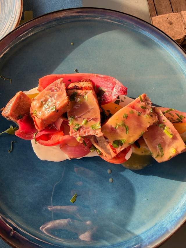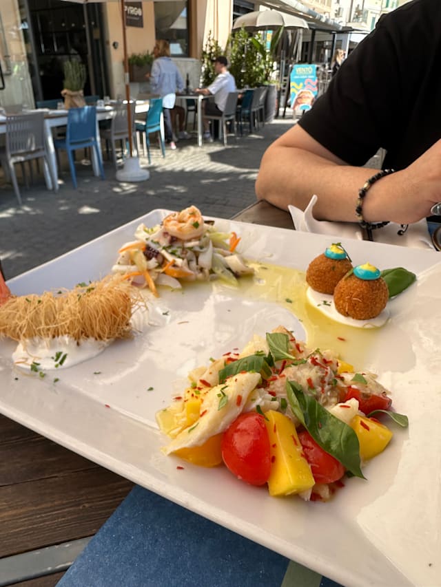 Maionese di limone, pomodoro, rucola, filetti di pesce