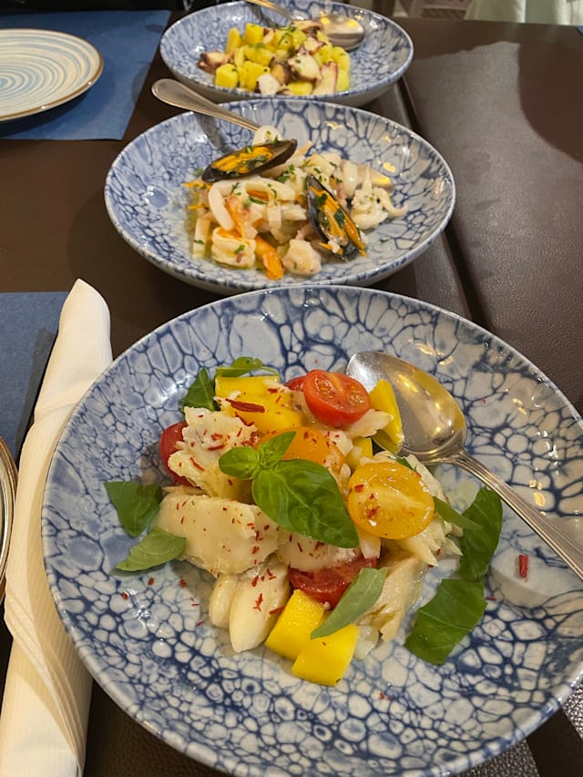 Ingredienti: tonno fresco, cetriolo, mango, avocado, ravanelli semi di sesamo, verza viola, zucchine marinate, salmone fresco datterini, melanzane grigliate, mais, il tutto con salsa yogurt o salsa teriaky solo a pranzo dal lunedì al venerdì