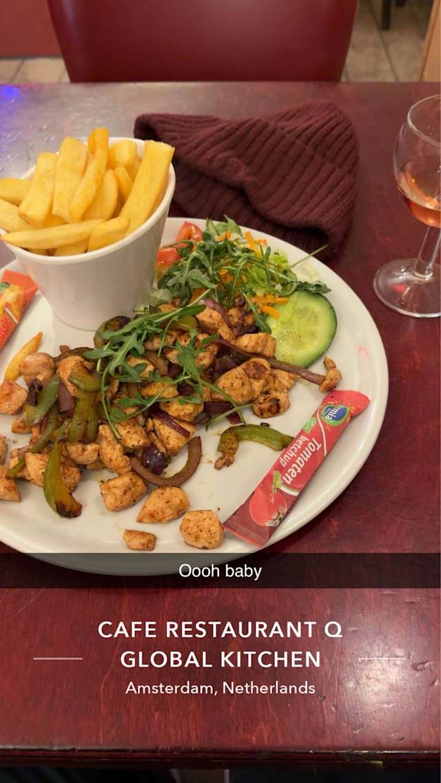 Sociability is at Q Global Kitchen restaurant, located on the Nieuwendijk in Amsterdam, very important. At Q Global Kitchen you will find a very varied menu. We serve breakfast, lunch and dinner. From pastas to delicious steaks, sandwiches to vegetarian dishes. If you want a delicious cocktail you c...