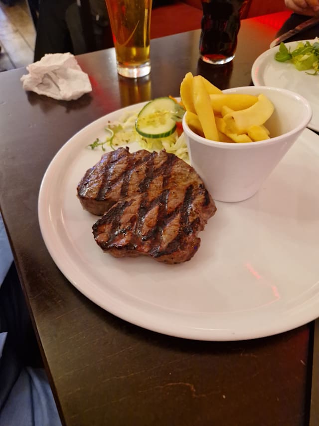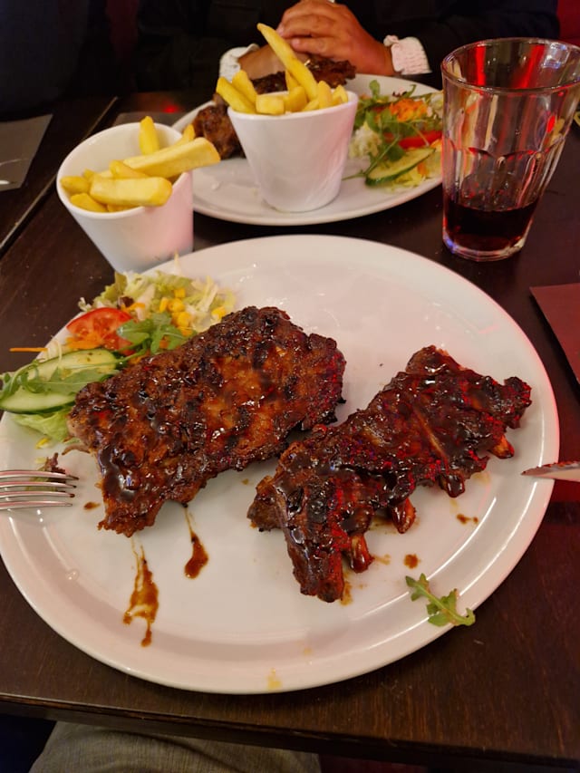 4/10The food was okay, not horrible, but have had so much tastier steaks and ribs in Amsterdam. Service was only ok, one woman running the whole dining room and I had to get my own condiments and couldn’t get another beer since 3 tables came in at the same time. If they had another waiter and cooked the food a little better, slower and longer might have made the food better. Also Jalapeños on ribs do not make them spicy and tangy, tasted like pickled jalapeños