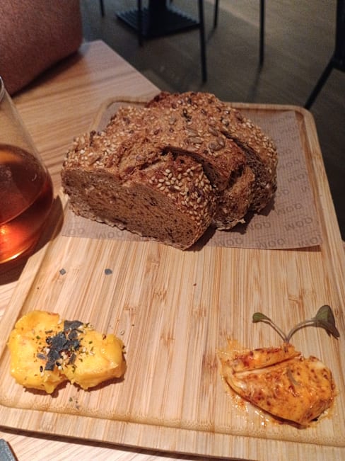 9/10An open airy restaurant with an inventive menu, with plenty for vegetarians. The starter of burrata with roasted plums was a perfect balance between sweet and savoury; the warm seeded bread with 2 types of butter delicious; my partner said his sardines were perfect